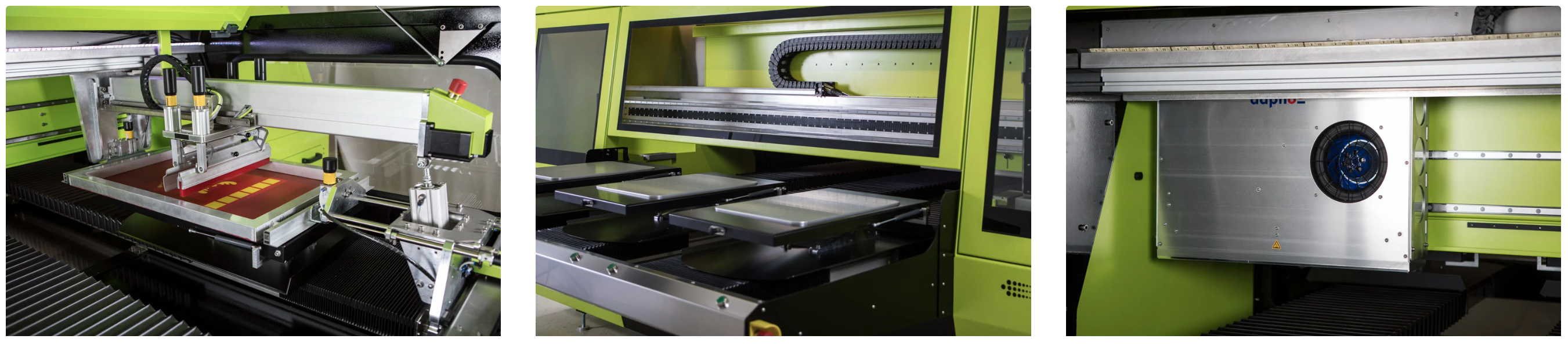 The Kyo Hybrid Series is the first real combination of a screen printing and digital textile printing which combines the advantages of both. It is the ideal printer for companies with a high volume production needs and offers a unique set of production flexibility.