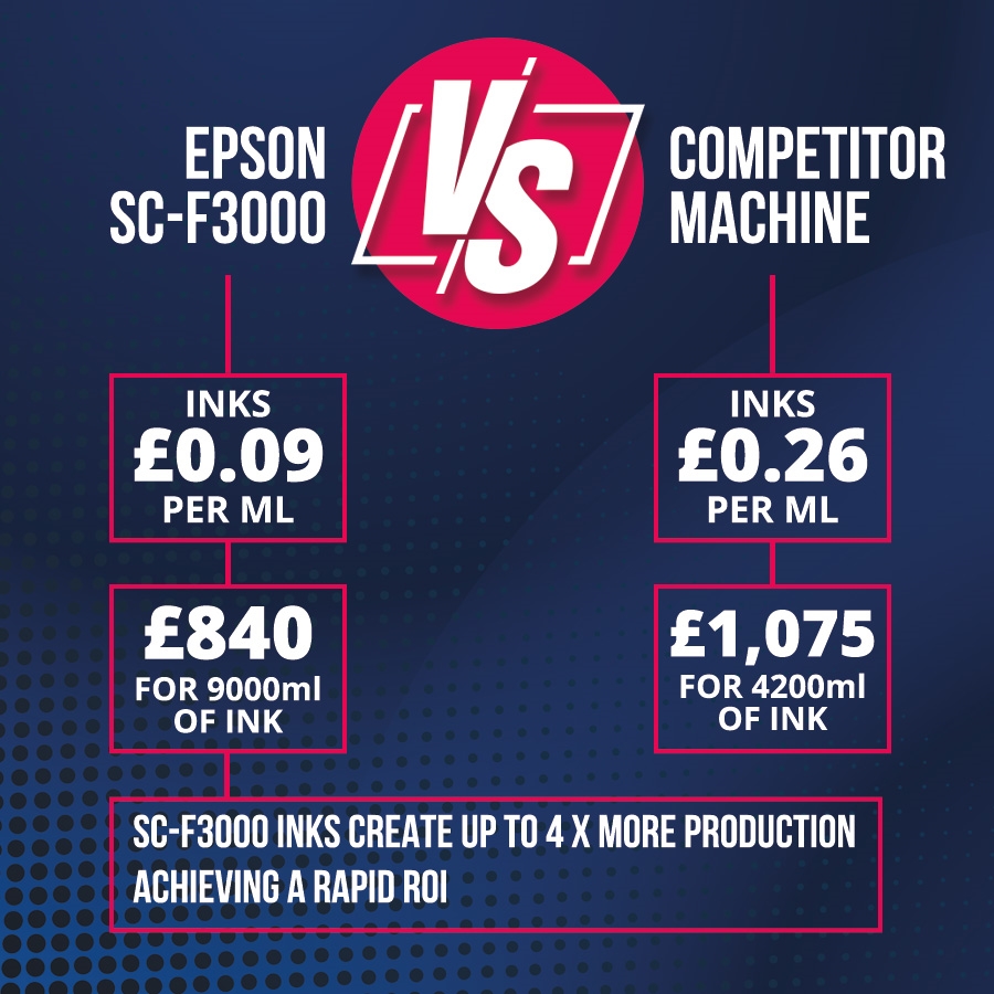 The SC-F3000 is an industrial level direct-to-garment (DTG) printer that's designed for high volume. This production-level printer has incredibly low running costs while speedily delivering high volume, top of the range quality.