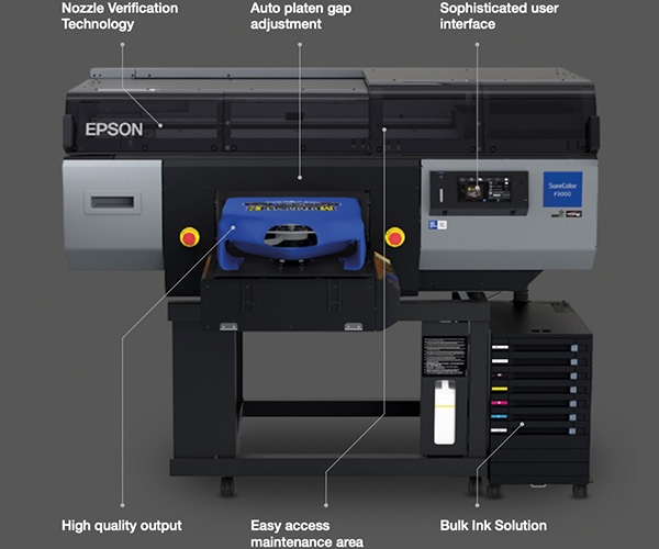 To complement the intuitive, highly-durable design, Epson has introduced elements to keep businesses running more efficiently. The auto platen gap adjustment feature detects surface height and allows for easy switching between garments of different thicknesses. The 1.5-litre bulk ink solution makes reloading and resetting ink a quick and easy job. Also, Epson's Production Monitor software provides ongoing printer status information on smart devices and PCs; this along with two μTFP user-replaceable printheads, help improve uptime.