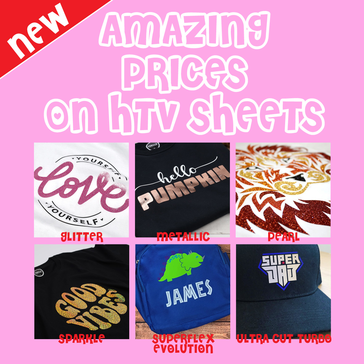 We’ve created some new sheet versions for some of our more popular heat transfer vinyls to give you more options than ever! Plus, for a limited time we have a special launch price on the new sheets so get yours now…