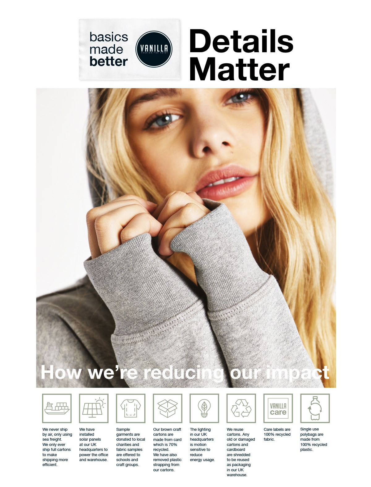 Sample garments are donated to local charities and fabric samples are offered to schools and craft groups.