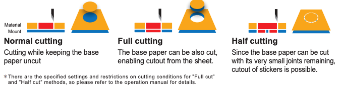 The highest-in-class cutting pressure enables the cutting of various materials such as sheets (e.g. PVC/fluorescent/reflective/rubber sheets) and the cutout of cardboard.
