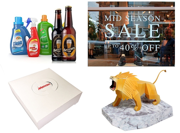 In addition to cutting letters, labels, and stickers, the CG-AR newly supports full cutting and folding lines of cardboard. It can also produce packages up to A3 size by using dedicated options.