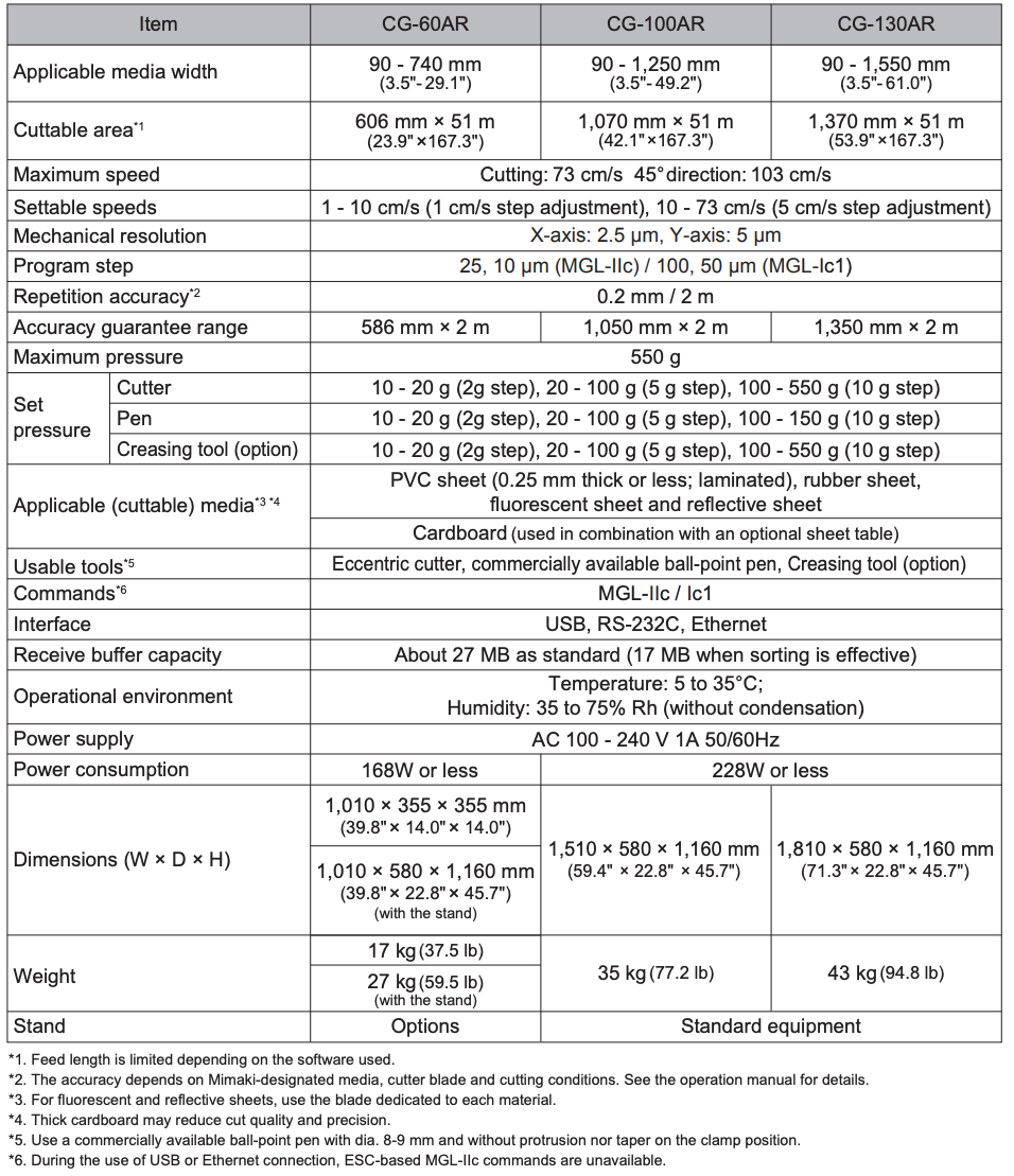 The CG-AR series builds upon the strong heritage of its predecessor and comes with new intuitive features and enhanced specifications. With the unique ID-Cut function, higher downforce, and improved accuracy, it offers reliable and precise cutting while working seamlessly with Mimaki printers.