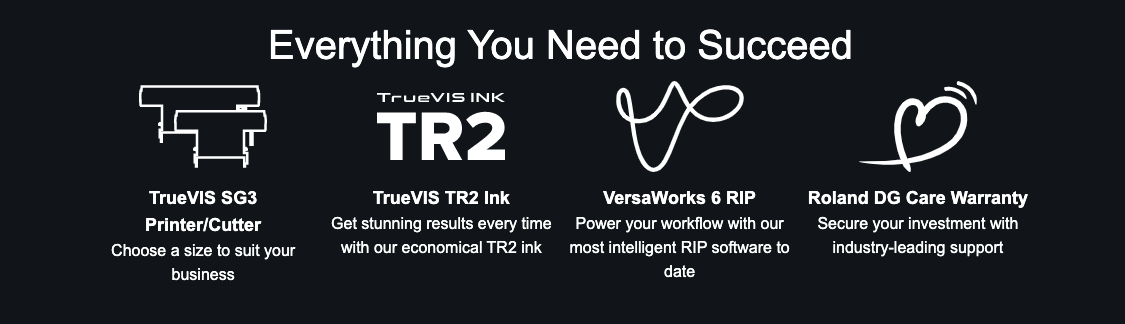You know where you want to go - but where you start can really make a difference. With the TrueVIS SG3 solution, you are prepared from day-one to produce a variety of products from large wall graphics to small stickers, all on the same device, using the same software and supported by the same great partnership